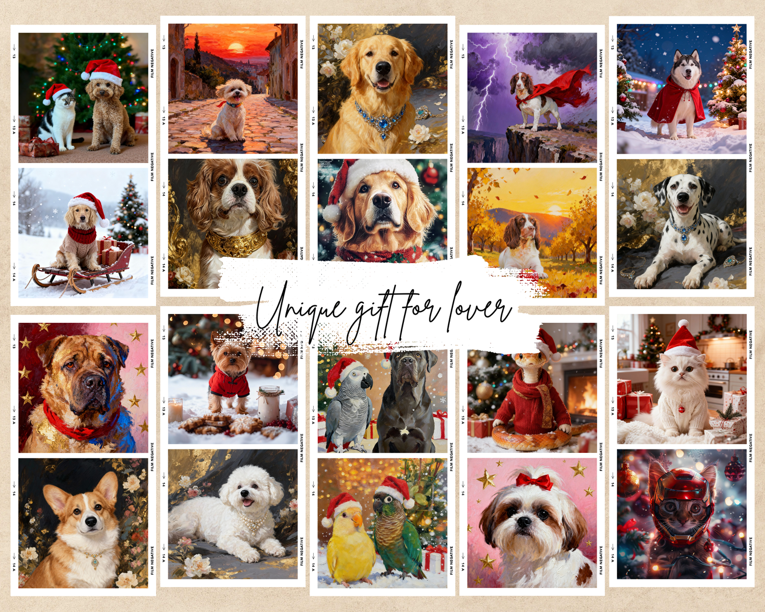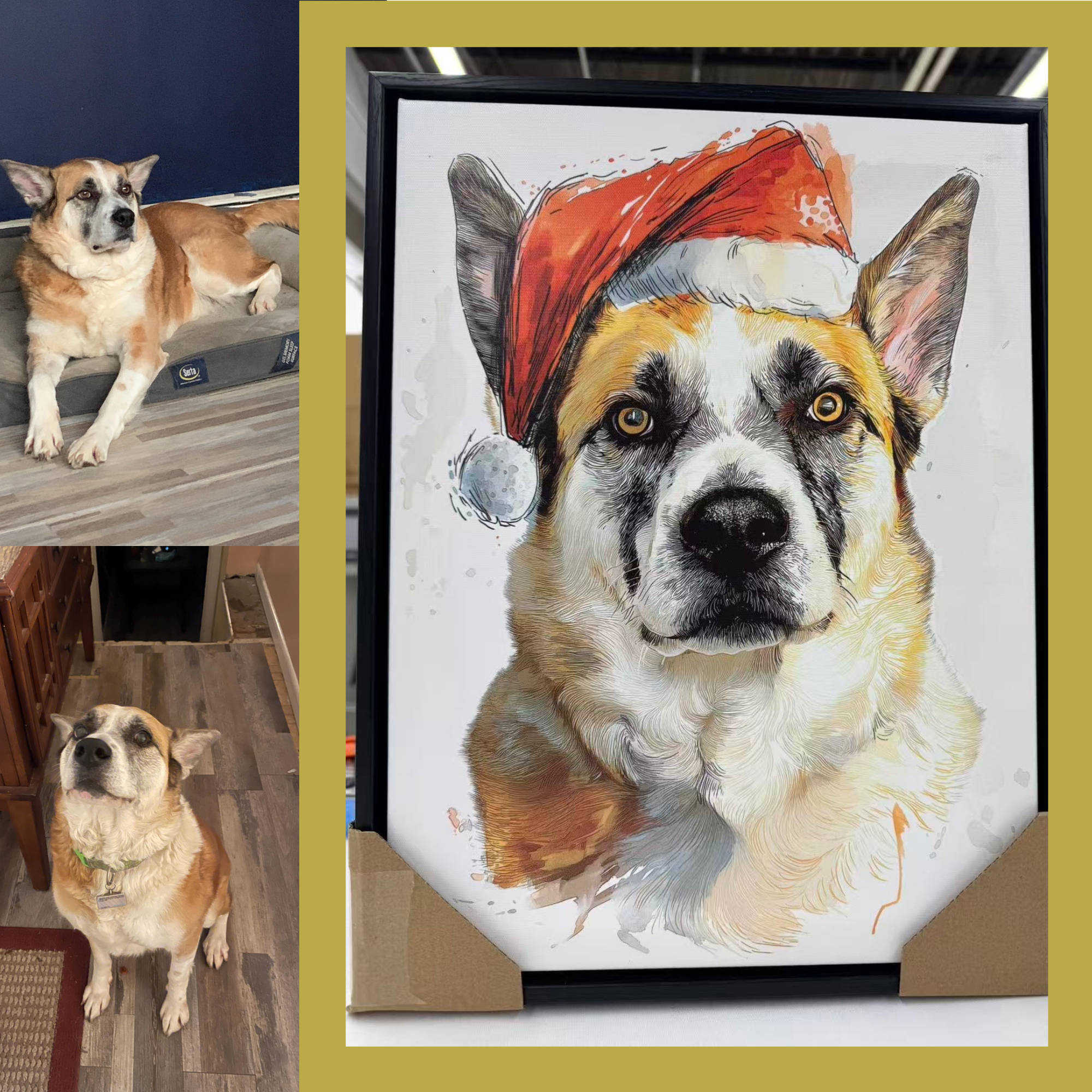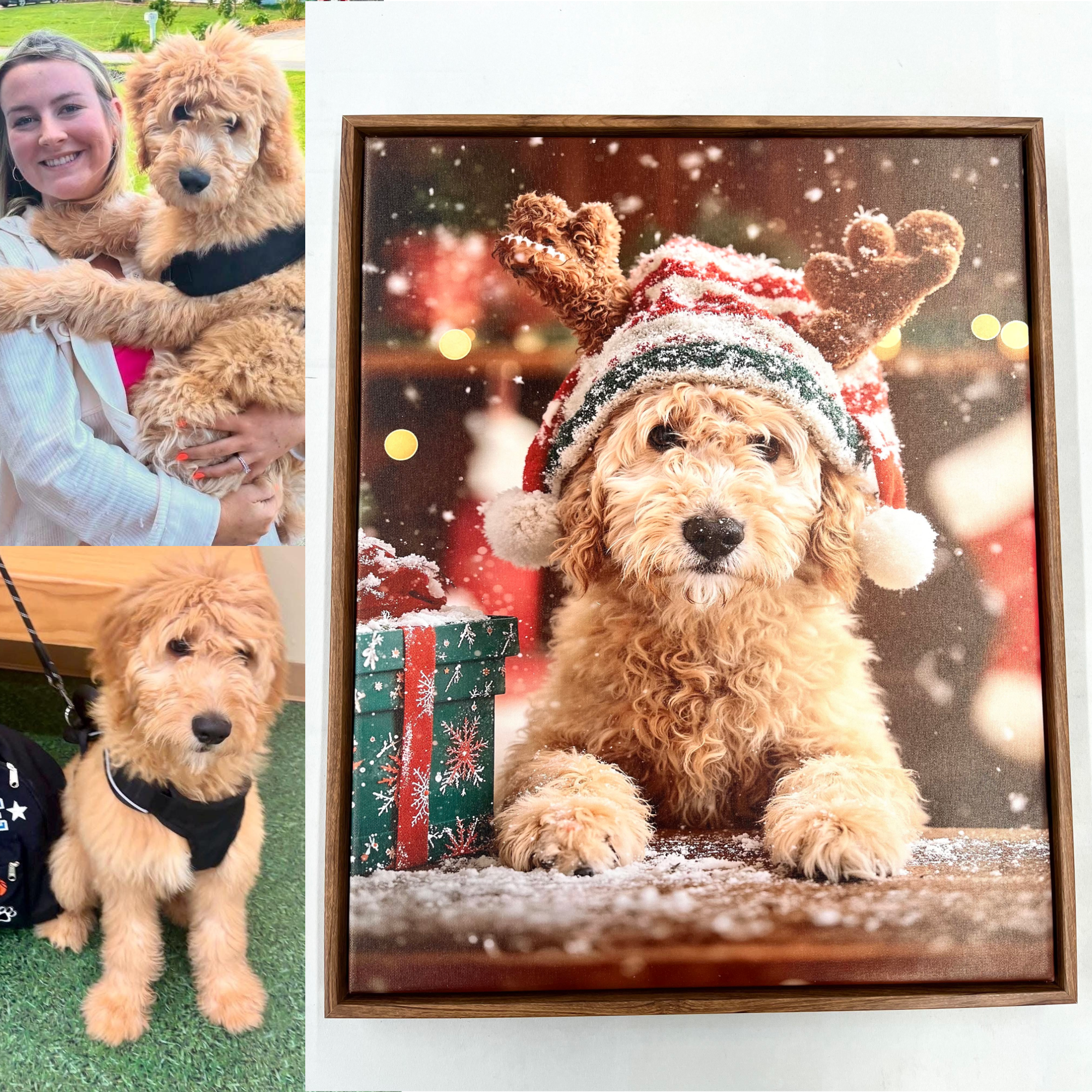 Christmas gift Custom pet Portrait from photo holiday wall art canvas Christmas Pet Portrait - Festive Pet Photo Gift for pet lover